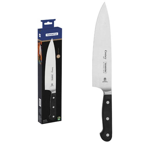 A faca chef Tramontina Century com lâmina em aço inox e cabo em policarbonato e fibra de vidro 8 polegadas combina precisão, durabilidade e praticidade. Com lâmina de aço inox forjado, oferece resistência excepcional para cortes precisos em diversos tipos de alimentos. Seu cabo ergonômico, feito de policarbonato com fibra de vidro, proporciona conforto, equilíbrio e alta durabilidade.