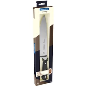 Para os apaixonados pelo mundo da gastronomia, a faca chef Tramontina Century com lâmina em aço inox e cabo em policarbonato e fibra de vidro 8 polegadas é a faca ideal. Com ela criar receitas e manipular diversos ingredientes é muito mais prático, pois tem lâmina em aço inox com tratamento térmico que assegura um corte rápido e preciso, além de garantir a longevidade do fio. Seu cabo de policarbonato com fibra de vidro possui formato anatômico, que proporciona conforto e durante o uso. Desenvolvida especialmente para uso intenso, possui 25 anos de garantia contra de fabricação. A Faca Chef Tramontina é ideal para cortar, fatiar, filetar e picar alimentos diversos, um item indispensável para sua cozinha!