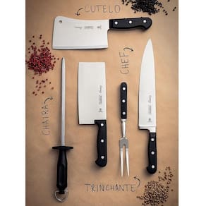 Faca Chef Tramontina Century Lâmina Em Aço Inox Cabo De Policarbonato E Fibra De Vidro 10" 24011110 FACA CHEF TRAMONTINA CENTURY COM LÂMINA EM AÇO INOX E CABO DE POLICARBONATO E FIBRA DE VIDRO 10 24011110 Marca: Tramontina Modelo: Chef Tramontina Century com Lâmina em Aço Inox e Cabo de Policarbonato e Fibra de Vidro 10 polegadas 24011/110 DESCRIÇÃO DA FACA CHEF TRAMONTINA COM LÂMINA EM AÇO INOX E CABO DE POLICARBONATO E FIBRA DE VIDRO - Seja você chef ou cozinheiro por hobby, garantimos que você entende a importância de utensílio de alta qualidade na sua cozinha, não é mesmo? - Por isso, a linha Century desenvolveu uma faca ideal para o uso intenso: a Faca Chef Tramontina Century com Lâmina em Aço Inox e Cabo de Policarbonato e Fibra de Vidro 10 polegadas. - Uma peça única, que recebe materiais de alta qualidade na sua produção, passando por um processo de fabricação rigoroso que a torna altamente durável, oferecendo ainda mais precisão no corte. - A Faca Tramontina Chef é produzida com lâmina em aço inox, com cabo em policarbonato com fibra de vidro. - Além disso, recebe tratamento térmico composto por têmpera (aquecimento da lâmina), sub- (resfriamento de -50 C a -196 C) e revenimento (aumento da flexibilidade do aço especial), proporcionando vida longa da lâmina. - Para tornar o manuseio ainda mais e confortável, o cabo é anatômico e ergonômico. - Faça diferente na sua cozinha, escolha Tramontina.