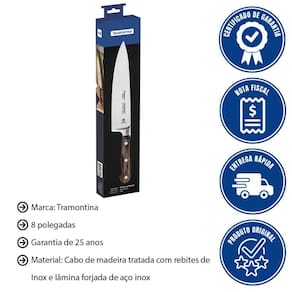 FACA CHEF TRAMONTINA CENTURY WOOD COM LÂMINA EM AÇO INOX E CABO DE MADEIRA TRATADA CASTANHO 8" 21541198