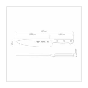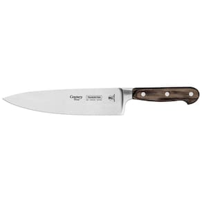 Faca Chef Tramontina Century Wood Com Lâmina Em Aço Inox E Cabo De Madeira Tratada Castanho 8 Polegada Faca Chef Tramontina Century Wood com Lâmina em Aço Inox e Cabo de Madeira Tratada Castanho 8 Com a faca chef Tramontina Century Wood com lâmina em aço inox e cabo de madeira tratada castanho 8 polegadas você terá em suas mãos uma verdadeira obra-prima culinária. Ela possui lâmina forjada de aço inox especial forjada com precisão, garantindo assim, um excelente poder de corte e ótima durabilidade do fio. Seu cabo é em madeira tratada com rebites de aço inox e proporciona toda a segurança e conforto que você necessita na hora de cortar, fatiar e picar os alimentos, seja você profissional ou amador na culinária. A faca chef Tramontina Century Wood é extremamente prática e lhe garante mais tempo em outras tarefas, pois pode ser levada à máquina de lavar louças, facilitando na hora da limpeza. Sem dúvida, a escolha perfeita para aprimorar suas habilidades na cozinha e criar verdadeiras obras-primas gastronômicas!