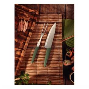 Toda a versatilidade da protagonista da cozinha: a faca chef Tramontina LYF com lâmina em aço inox e cabo de polipropileno PCR verde natureza 7 polegadas. Desenvolvida com materiais reciclados e recicláveis, ela é uma faca para o uso com os mais diversos alimentos e variados tipos de preparos. Sua lâmina é produzida em aço inox e seu cabo é em polipropileno PCR, características que garantem excelente poder de corte, alta resistência e durabilidade, além de permitir que seja levada à máquina de lavar louças. Inspirada em elementos naturais, tais como o vento e a folha, ela tem formas fluidas e é a escolha mais sustentável para sua cozinha!