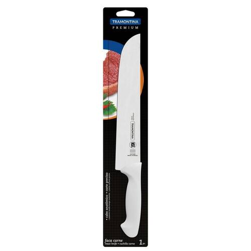 Faca Chef Tramontina Premium Com Lamina Em Aço Inox E Cabo De Polipropileno Branco 10" Faca Chef Tramontina Premium com Lâmina em Aço Inox e Cabo de Polipropileno Branco 10 A Faca Chef Tramontina Premium com Lâmina em Aço Inox e Cabo de Polipropileno Branco 10 Polegadas é a protagonista da cozinha de quem ama preparar suas receitas! Sua lâmina de 10 polegadas é produzida em aço inox e possui fio de corte de alta durabilidade, devido ao tratamento térmico aplicado à lâmina. Seu cabo anatômico e texturizado é em polipropileno branco, e proporciona um manuseio muito mais seguro e confortável. Além de tudo, é fácil de limpar e pode ir à máquina de lavar louças. Uma faca de qualidade e com um design perfeito para quem gosta de fazer bonito todos os dias!