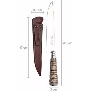 Essa faca é produzida em material resistente e sua lâmina vem com fio de fábrica. Com ela você consegue cortes uniformes e precisos. Seu design assemelha-se com os gomos do rabo de tatu. É uma peça ideal para colecionadores, para o preparo de carnes ou até mesmo para ser utilizada em pescas e acampamentos.