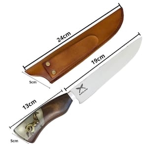 Dimensões da faca com bainha: 34cm (C) x 2,5cm (L) x 6cm (A);