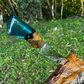 Materiais: aço Inox 420c, madeira, resina e objeto;