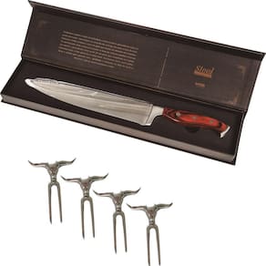 Quatro 4 garfinhos para petiscos ou Churrasco. As facas da linha Steel tem design sofisticado e atraente. Cabo em madeira e lâmina afiada em aço inox, são leves e de fácil manuseio, perfeitas para auxiliar nas tarefas da cozinha. Com caixa colorida e bem trabalhada, é uma excelente opção para dar de presente. As facas da linha Steel tem design sofisticado e atraente. Com cabo em madeira e lâmina afiada em aço inox, são leves e de fácil manuseio, perfeitas para auxiliar nas tarefas da cozinha. É uma excelente opção para dar de presente. Não use a faca sobre vidro, mármore ou pia de inox, pois essas superfícies prejudicam a lâmina e diminuem sua vida útil. Use sempre a sua faca sobre uma boa tábua de corte, seja de polietileno, madeira ou bambu. Faca: 38,5cmX4,5cmX2cm Caixa: 42,5cmX9cmX3cm embalagem para presente Marca: Não Informado Ean: 7427014027947