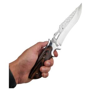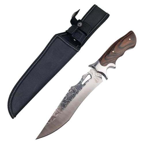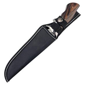 Faca Com Lâmina Lisa Decorada Cabo De Madeira E Bainha Nylon A Faca Fulltang com Lâmina Lisa Decorada é uma peça que combina estilo e funcionalidade. Com uma lâmina decorada que agrega elegância ao design, esta faca é ideal para colecionadores e admiradores de itens de cutelaria. Seu formato robusto e equilibrado proporciona precisão e conforto durante o uso, tornando-a uma excelente adição a qualquer coleção ou kit. O cabo de madeira cuidadosamente trabalhado oferece uma pegada firme e confortável, além de um visual clássico e natural. A construção Fulltang, onde a lâmina se estende por toda a estrutura do cabo, garante resistência e estabilidade, conferindo durabilidade ao produto mesmo em usos prolongados. A faca acompanha uma bainha de nylon resistente, projetada para proteger a lâmina e facilitar o transporte. Compacta e prática, a bainha oferece segurança e conveniência, seja para guardar ou carregar a faca. O acabamento em nylon reforçado também agrega ao estilo e à proteção do conjunto. Com seu design decorativo e materiais de alta qualidade, esta Faca Fulltang com Lâmina Lisa Decorada é perfeita para uso recreativo, exposições ou como item de coleção. Seja para admiradores de cutelaria ou entusiastas de facas utilitárias, esta peça une praticidade e estilo em um único produto.
