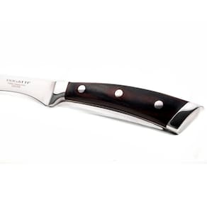 A coleção de facas Pakka da Bugatti é robusta e sofisticada. Produzida pela madeira nobre pakkawoud, inspirando o nome da linha, essa matéria prima tem o desenho natural das linhas da madeira clássica e é extremamente resistente, muitas vezes sendo utilizada em instrumentos musicais, o que traz o ar de sofisticação para a coleção.