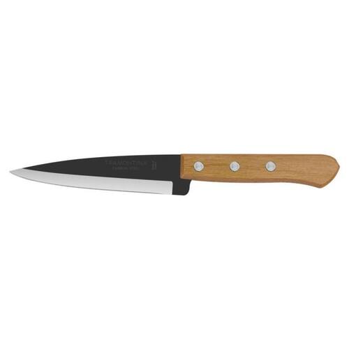 As facas das linhas Carbono têm lugar certo em sua cozinha. O toque da natureza é dado por cabos rústicos de madeira, todos finalizados com rebites de alumínio. O poder de corte é garantido pelo tratamento térmico aplicado às lâminas de de aço carbono finalizadas com verniz protetor. Medidas Total: 26cm. Comprimento da Lâmina: 15cm. Altura: 4cm. Largura: 3,5cm. Material: Madeira e Carbono. Ean: 7891112069817