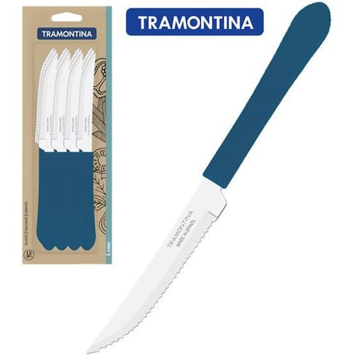 Faca de churrasco de inox 4''cabo azul claro com 12 pçs leme Faca de churrasco de inox 4'' cabo azul claro com 12 pecas leme Informações adicionais: Ean: 7891112281790 Validade: indeterminada Tamanho aproximado da faca: 4'' Tamanho aproximado do embalagem: a:27,5xl:10cm Peso aproximado: 225g Tipo de produto: faca de churrasco com cabo leme com 12 peças na cartela Cor: prata com cabo azul claro Composição: inox e polipropileno Ean: 7891112281790