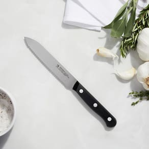 HENCKELS Faca utilitária serrilhada Solution Razor-Sharp de 12,7 cm, faca de tomate, projetada alemã informada por mais de 100 anos de maestria