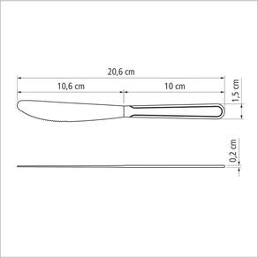 Para uma refeição saborosa, conte com a Faca de Mesa 4 polegadas Tramontina Búzios em Aço Inox! Inteiramente produzida em aço inox, ela possui espessura que garante um alto grau de durabilidade, podendo ser lavada na máquina de lavar louças, otimizando seu tempo e permitindo que passe mais tempo sua família. Seus pratos não estão sujeitos à arranhões, uma vez que seus métodos de produção não permitem que isso ocorra. Sua casa muito mais completa e linda com a Tramontina! Orientações Talher produzido em aço inox que mantém a beleza, a higiene e a durabilidade. Lâmina da faca tem maior durabilidade do fio devido ao tratamento térmico. Pode ir à máquina de lavar louças facilitando seu dia a dia. Observações Antes da primeira utilização, lave bem a peça e seque-a. Tenha cuidado ao manusear produto cortante e perfurante e mantenha-o fora do alcance de crianças. Para maior durabilidade do produto, recomenda-se secar bem antes de guardar, mesmo após lavagem em máquina.Para descarte do produto e embalagem siga as orientações de reciclagem vigentes. Características Gerais EAN13 7891112122840 DUN14 17891112122847 NCM 8211.91.00 Peso Líquido 0,0325 kg. Peso Bruto 0,0325 kg. Metragem 0,000012 m³. Dimensões Embalagem (Compr. X Larg. X Alt.) 205x 19x 3 mm.