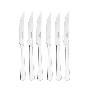 Contem: 6 Facas de Mesa Serrilhada Medidas: 21,5 x 2 cm Espessura: 3 mm Lamina: 216 mm Material: Aço Inoxidavel Linha: Toronto CASACHA é uma empresa pioneira em vendas online. Hoje esta presente em diversos canais, especializada em utensílios de cozinha e aventais profissionais. Oferecendo qualidade, variedade e praticidade para chefs e amantes da culinaria. Transformando cozinhas em espaços criativos e funcionais, proporcionando experiencias gastronomicas memoraveis.