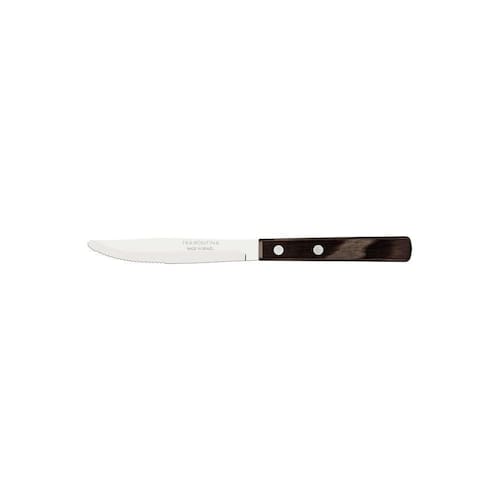 Se você procura por talheres de qualidade e charmosos para deixar a composição da sua mesa ainda mais bonita nos jantares em família, a Faca de Mesa Tramontina com Lâmina em Aço Inox e Cabo em Madeira Polywood Castanho 4 polegadas é a escolha certa! Além de possuir uma beleza clássica, devido ao cabo em madeira tratada Polywood, a peça lhe proporciona alta durabilidade e resistência, pois tem lâmina em aço inox com um fio de corte eficaz. Utilize a linha Polywood e tenha mais qualidade na palma da sua mão! Orientações A lâmina de aço inox tem maior durabilidade do fio devido ao tratamento térmico. O cabo de madeira tratada Polywood é resistente à impactos e alta temperaturas garantindo maior resistência e durabilidade. Rebites de alumínio. Pode ir à máquina de lavar louças facilitando seu dia a dia. Características Gerais EAN13 7891112108066 DUN14 17891112108063 NCM 8211.91.00 Peso Líquido 0,0290 kg. Peso Bruto 0,0290 kg. Metragem 0,000031 m³. Dimensões Embalagem (Compr. X Larg. X Alt.) 204x 17x 9 mm. Cor 1 4E3629 Hexa Observações Antes da primeira utilização, lave bem a peças e seque-a. Produto cortante e perfurante: tenha cuidado ao manusear e mantenha fora do alcance das crianças.Para maior durabilidade do produto recomenda-se secar bem antes de guardar, mesmo após lavagem em máquina. Para descarte do produto e embalagens siga as orientações de reciclagem vigentes.