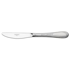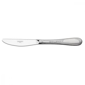 Faca totalmente temperada, que garante maior durabilidade no fio de corte e maior resistência à corrosão, e por sua característica de temperabilidade, não risca as porcelanas. Totalmente feita de aço inox, mantém suas características , preservando a beleza, a higiene e a durabilidade do material. Acabamento brilho e fosco. Própria para uso diário combina com qualquer ambiente. Pode ser lavada diariamente na máquina de lavar louças.