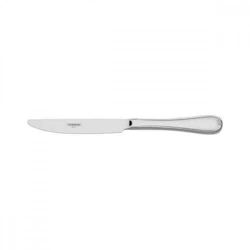 Totalmente feita de aço inox, altamente durável, mantém suas características , preservando a beleza, a higiene e a durabilidade do material. Faca totalmente temperada, que garantem maior durabilidade no fio de corte e maior resistência à corrosão, e por suas características de temperabilidade, não risca as porcelanas. O cabo da faca se adapta melhor a palma da mão. Possui equilíbrio harmônico entre o cabo e a lâmina. Acabamento em alto brilho, com detalhes no cabo. Pode ser lavada diariamente na máquina de lavar louças.