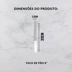 Faca de Pão, linha Chef, composta por uma lâmina de 8’’ em aço inox, com design moderno e exclusivo, acabamento em alto brilho, possui formato de cabo ergonômico revestido em polipropileno, adequado para cortes de pães facilitando com praticidade, segurança e garantindo maior durabilidade de corte.