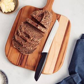 É uma faca prática que auxilia você no dia a dia a cortar seu pãozinho sem amassá-lo.