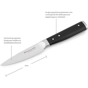 A faca Kitchenaid 3.5 de ponta fina é ideal para pequenas necessidades diárias de preparação de alimentos, desde cortar frutas delicadas até fatiar um lanche.