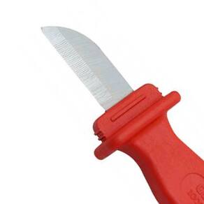 Faca Desencapadora de Cabos Isolada 1000v Gedore Características da Ferramenta Lâmina em aço especial, cabo e capa em polímero anti-chamas, na cor vermelha, padrão Gedore Lâmina reta e resistente, com tratamento térmico Indicada para cortar e descascar cabos Acompanha uma capa para proteger a lâmina Com revestimento produzido por injeção, propiciando isolação até 1000 V, conforme norma NBR 9699, Submetida à ensaios de: impacto, tensão elétrica, aderência, inflamabilidade e pressão/ Utilizar esta faca isolada, em tensão máxima de 1000 V em corrente alternada e 1500 V em corrente contínua, Conforme norma NBR 9699. Atende com segurança a norma regulamentadora NR 10 - Segurança em Instalações e Serviços em Eletricidade, Possui certificado de isolação Imagem Meramente Ilustrativa Dados Técnicos: NBR 9699 NR 10 Peso: 0,110 Tamanho: 197mm Lâmina: 50mm Acompanha: 1un. Faca Desencapadora de Cabos Isolada 1000v Gedore : 90 dias pelo fabricante. Especificações: Código: 195027 Modelo: 035100 Código EAN: 7891504918372 Marca: Não Informado