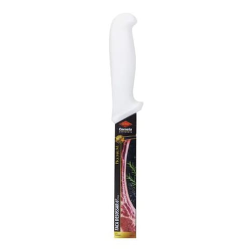 A marca corneta é uma marca tradicional reconhecida mundialmente pela qualidade de seus produtos; na alemanha desde 1787; no brasil desde 1932; esta é a faca profissional de açougue. faca desossar 6' cabo branco premium dimensões da peça: 18 x 4,5 x 2,5 cm material: aço inox e pp cor do cabo: branco tipo de embalagem: bainha marca: corneta lâmina: 6" 15,2 cm espessura da lâmina: 2,5 mm indicação: indicada para retirar ossos, gorduras ou cartilagens das carnes. recomendações: mantenha a faca afiada. sempre guarde a faca seca. atenção: cuidado ao manusear produtos cortantes e perfurantes. guarde em local seguro. guarde estas instruções para futuras consultas. manter fora do alcance das crianças./p