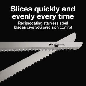 Proctor Silex Faca elétrica de fatia fácil para esculpir carnes, aves, pão, espuma de artesanato e muito mais, leve com aderência contornada, branca - Ótimo para fatiar carnes e pães. A faca elétrica é a faca perfeita para esculpir peru. Fatia sem esforço presunto, peru, assados e uma variedade de carnes. Também é ótimo para fatiar uniformemente pão artesanal, caseiro e outros tipos de pão. - Fatie rapidamente e uniformemente. As lâminas alternativas da faca elétrica são serrilhadas e feitas de aço inoxidável durável, dando a você o controle de precisão para cortar rápida e uniformemente toda vez que você fatiar. - Fácil de segurar. A faca elétrica é leve e tem uma aderência ergonômica e contornada à mão que é fácil de segurar. - Esculpe carnes grandes sem esforço e muito mais. O cabo extra longo de 152 cm oferece muito alcance para esculpir carnes grandes e para cortar espuma e outros materiais para artesanato e projetos de bricolage. - Controle de gatilho fácil de usar. Ligue a faca simplesmente deslizando o gatilho. Solte o gatilho para parar a faca