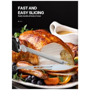 A Faca Elétrica Reemix Z3042 é a solução ideal para entalhar uma grande variedade de alimentos com facilidade e precisão. Equipada com duas lâminas serrilhadas de aço inoxidável de grau alimentício, uma para carnes e outra para pães, garantindo durabilidade e resistência contra corrosão. Seu potente motor de 100 watts e lâminas reciprocantes proporcionam um corte rápido e uniforme em carnes cozidas, cruas e congeladas, assados, aves, pães, frutas e vegetais. Além disso, conta com um cabo ergonômico, fio de 6 polegadas para maior estabilidade de corte, trava de segurança dupla e certificação de segurança ETL. Acompanha garfo para servir. Aproveite a praticidade e eficiência da Faca Elétrica Reemix Z3042 em suas refeições diárias!