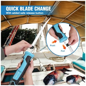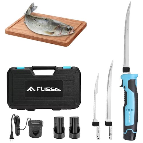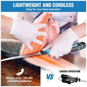 Desfrute de filés sem cansaço com o facão elétrico para filé de peixe da FLISSA. Seu cabo ergonômico macio e protetor de gatilho garantem uma pegada firme e antiderrapante para um controle preciso e seguro durante o corte do peixe. O potente motor de alta velocidade e torque oferece desempenho eficiente para filé rápido, suave e sem esforço. O design sem fio e leve proporciona uma maior manobrabilidade. As lâminas são feitas de aço inoxidável superior resistente à corrosão e podem ser facilmente trocadas, com a rigidez e flexibilidade certas, oferecendo grande versatilidade para diferentes tamanhos ou espécies de peixes. Equipado com 2 pacotes de bateria de lítio substituíveis de 2.0Ah, oferecendo uma vida útil da bateria prolongada, sem a necessidade de esperar pela recarga, além disso, o indicador de bateria LED garante que você tenha sempre uma faca funcionando. Vem com um estojo de transporte rígido personalizado para armazenamento e transporte conveniente. O estojo foi projetado para manter a faca elétrica sem fio, lâminas removíveis e acessórios de forma segura. Após 20 minutos de uso contínuo, a maioria das ferramentas elétricas irá gerar algum calor, o que é normal e não necessariamente indica um mau funcionamento. Recomendamos dar uma pausa à sua ferramenta para esfriar. Evite usar esta faca elétrica em condições extremas, como cortar continuamente ossos duros. Se notar aquecimento excessivo em um curto período, sinta-se à vontade para nos contatar para assistência.