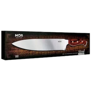 A Faca 8 da linha Steel da Mor tem design sofisticado e atraente. Com cabo em madeira tratada e lâmina afiada em aço inoxidável, é leve, resistente e de fácil manuseio, perfeita para auxiliar nas tarefas da cozinha. Elegância e bom gosto embalado em uma caixa colorida e bem trabalhada, sendo uma excelente opção para presente. Especificações: Material: Aço Inox e Madeira Medidas: 33cm C x 4,5cm L x 2cm A Peso: 220g Ean: 7896020639411