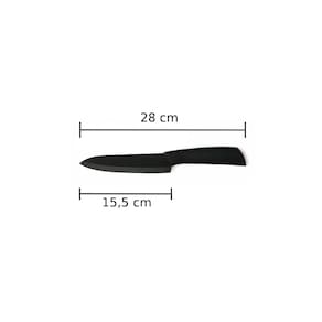 Seu design totalmente preto traz mais elegância à cozinha, enquanto o cabo anatômico emborrachado garante firmeza e segurança no manuseio. Além disso, acompanha bainha protetora, proporcionando mais segurança no armazenamento.