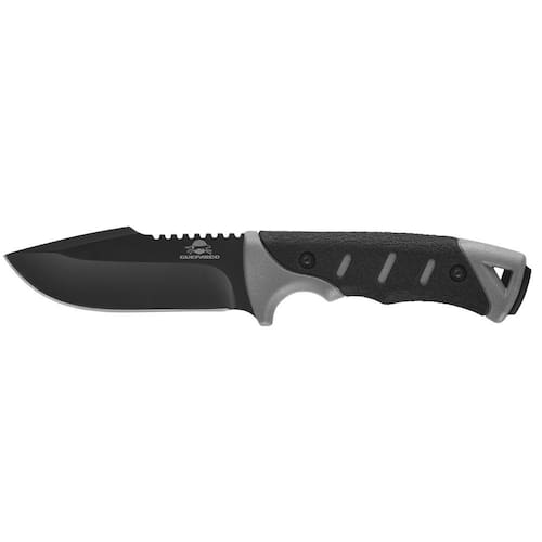 Lâmina Clip Point Revestimento antirreflexo Pomo Estendido Passador para fiel Apoio superior para polegar Acompanha bainha em Nylon Balístico. Material: Aço Inox 440 e cabo em plástico ABS com revestimento emborrachado Medidas: Lâmina 10,5 cm / Cabo: 13 cm / 23,5 cm Peso: 0,200kg Ean: 7898471192187