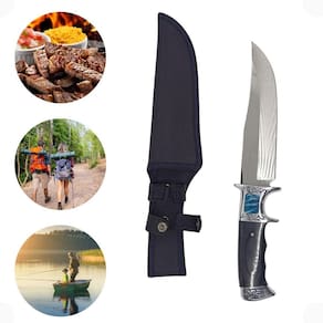 Faca inox pedra azul churrasco pesca com bainha Faca lâmina inox cabo resina imitando madeira pedra azul com bainha Ficha técnica: Peso da faca: 365 gramas; Comprimento total da faca: 30,0 cm; Comprimento da lâmina: 17,5 cm - 7,0 polegadas; Largura da lâmina: 4,0 cm; Espessura da lâmina: 4,0 mm; Comprimento do cabo: 12,5 cm; Material da lâmina: aço inox; Material do cabo: resina imitando madeira; Cor da lâmina: prata; Formato da lâmina: clip point; Estilo da faca: esportiva Bainha: acompanha bainha em nylon e com passante de cinto largo. Afiação da faca: este produto já vem de fábrica com boa afiação. Para conservação utilizar afiadores apropriados. Conservação / durabilidade: durabilidade indeterminada. Para melhor conservação guardar seca e limpa. Restrições / riscos: este produto é cortante e perfurante, por isso seu uso exige cuidados. Manter fora do alcance de crianças e menores de idade. Funções da faca: corte, perfuração. Uso: esportivo, pesca, camping, trilhas, aventuras na mata, churrasco, esportes outdoor, coleção, trabalho gerais. Marca: Não Informado