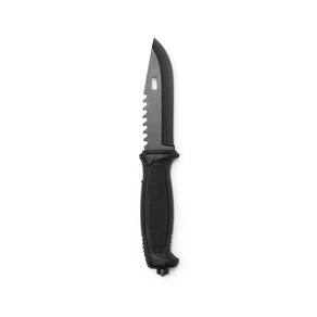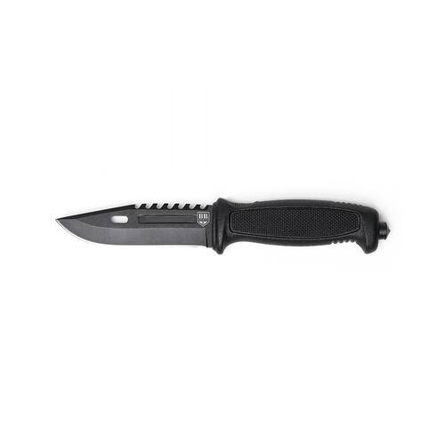 Compacta, a Faca BR FORCE Taipan possui lâmina em aço 3cr13 em acabamento preto, cabo em polímero e bainha em ABS. Também conta com pomo metálico (quebra-vidros).
