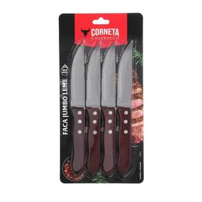 Faca jumbo para churrasco de inox com cabo de madeira 4 pçs