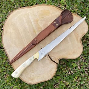 Faca Língua de Chimango 12' Aço inox 420c 4mm Cabo de Osso e Bainha de Couro Zanline.