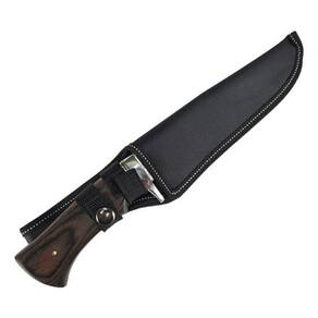 A faca possui um cabo de madeira e uma lâmina de aço inoxidável Para uma maior Durabilidade, Bainha de Nylon para Transporte e proteção do Fio de Corte da lamina Essa faca é versátil e adequada para uma variedade de tarefas. Com seu cabo confortável e lâmina afiada, ela proporciona um manuseio preciso e seguro.