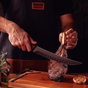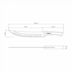 A lâmina em aço inox escurecido confere resistência aprimorada contra impactos e desgastes, enquanto o formato com sulcos melhora a performance ao evitar que os alimentos grudem. O cabo de madeira com encaixe anatômico e rebites metálicos proporciona maior controle e estabilidade durante o uso, mesmo em longas sessões de preparo. Fabricada com materiais duráveis, a faca resiste ao uso frequente e mantém sua eficiência por muito mais tempo. Garanta agora a sua Tramontina Churrasco Black 10" e leve mais precisão, conforto e personalidade para cada corte!