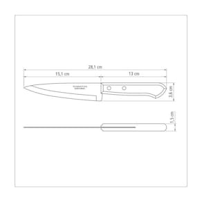 Faca Para Carne/cozinha 6" Faca para carne/cozinha 6 Com cabos de madeira natural e rebites de alumínio, as facas da Linha Dynamic levam rusticidade e beleza às refeições informais. A qualidade das peças é garantida também pela espessura e formato das lâminas de aço inox. As lâminas das facas recebem tratamento térmico, resultando em maior resistência e durabilidade do fio de corte.