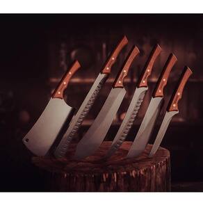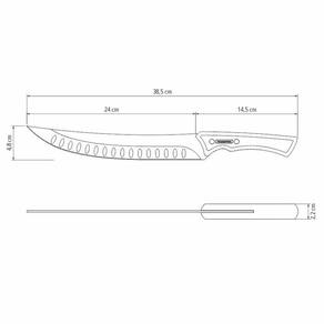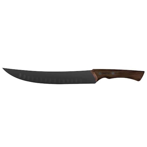 INFORMAÇÕES GERAIS DA FACA PARA CARNE TRAMONTINA COM LÂMINA EM AÇO INOX ESCURECIDO E CABO DE MADEIRA - Ideal para cortes grandes. - Lâmina de aço inox escurecido. Resistente e robusta. - Cabo de madeira com design anatômico que torna o uso muito mais confortável. - Rebites aço inox escurecido.
