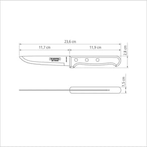 Faca para Churrasco Jumbo Tramontina com Lâmina de Aço Inox e Cabo de Madeira Polywood Vermelho 5" Ao servir um bom churrasco, nada melhor do que ter talheres que levam mais estilo e praticidade. Com a Faca para Churrasco Jumbo Tramontina com Lâmina de Aço Inox e Cabo de Madeira Polywood Vermelho 5 polegadas você vai ter uma peça de bom gosto e qualidade na hora de servir. Produzida com lâmina em aço inox e cabo em madeira tratada Polywood, ela leva mais beleza à mesa devido sua cor vermelha. É resistente ao tempo e à umidade e muito mais durável, garantindo ainda um corte mais perfeito. . Informações Gerais Lâmina de aço inox têm maior durabilidade do fio devido ao tratamento térmico. Cabo de madeira tratada Polywood é resistentes à impactos e alta temperaturas garantindo maior resistência e durabilidade. Rebites de alumínio. Pode ir à máquina de lavar louças facilitando seu dia a dia.