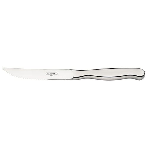 Todo bom apreciador de churrasco e carnes sabe a importância de uma faca de alto desempenho. A Faca Tramontina para Churrasco Jumbo Lâmina em Aço Inox com Fio Serrilhado conta com um design sofisticado e leva elegância para a mesa, feita totalmente em aço inox ela proporciona alta durabilidade. Contando com uma lâmina temperada e fio serrilhado, o fio de corte torna-se ainda mais durável e resistente à corrosão, além disso, por sua característica de temperabilidade, não risca as porcelanas. A faca traz um manuseio agradável, pois se adapta melhor a palma da mão. Preparar e saborear um bom corte de carne ficou ainda mais fácil.