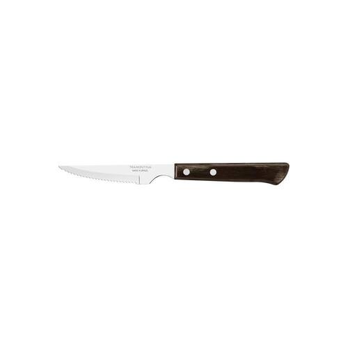 Saboreie um bom churrasco com os melhores talheres. Com a Faca para Churrasco Tramontina com Lâmina em Aço Inox e Cabo em Madeira Polywood Castanho 4 polegadas você vai ter uma peça cheia de estilo e praticidade para acompanhar as carnes mais deliciosas. Produzida com lâmina em aço inox e cabo em madeira tratada Polywood, ela embeleza sua mesa com sua estilosa cor castanho. É uma peça durável que corta com perfeição e qualidade. Orientações Lâmina de aço inox têm maior durabilidade do fio devido ao tratamento térmico. Cabo de madeira tratada Polywood é resistentes à impactos e alta temperaturas garantindo maior resistência e durabilidade. Rebites de alumínio. Pode ir à máquina de lavar louças facilitando seu dia a dia. Observações Antes da primeira utilização, lave bem as peças e seque-as. Tenha cuidado ao manusear produtos cortantes e perfurantes e mantenha-os fora do alcance de crianças.Para maior durabilidade dos produtos, recomenda-se secar bem antes de guardar, mesmo após lavagem em máquina.Para descarte dos produtos e embalagens siga as orientações de reciclagem vigentes. Características Gerais EAN13 7891112104969 DUN14 17891112104966 NCM 8211.91.00 Peso Líquido 0,0456 kg. Peso Bruto 0,0456 kg. Metragem 0,000058 m³. Dimensões Embalagem (Compr. X Larg. X Alt.) 229x 21x 12 mm. Dimensões Produto (Compr. X Larg. X Alt.) 218x 22x 13 mm. Cor 1 4E3629 Hexa