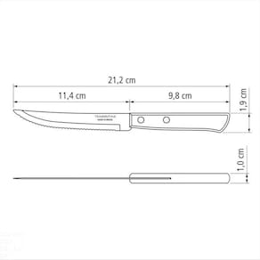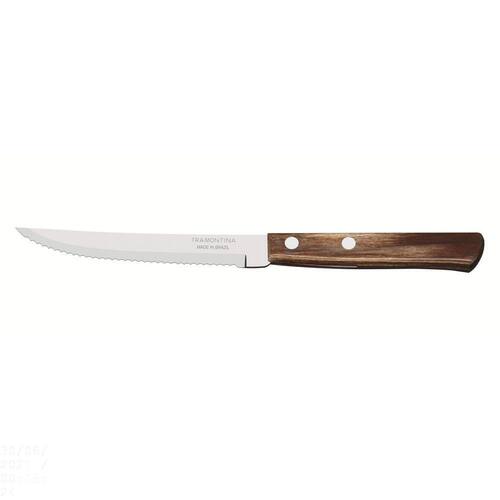 Com a Faca para Churrasco Tramontina com Lâmina em Aço Inox e Cabo em Madeira Polywood Castanho 5 polegadas seu churrasco no jantar ou almoço terá o charme e a qualidade que ele merece. Com lâmina produzida em aço inox com tratamento térmico, a faca possui fio de alta durabilidade e resistência. Além disso, seu cabo em madeira tratada Polywood proporciona a combinação perfeita de material e cor, ideal para ambientes rústicos. Charme e qualidade é com os produtos Tramontina! Orientações A lâmina de aço inox tem maior durabilidade do fio devido ao tratamento térmico. O cabo de madeira tratada Polywood é resistente à impactos e alta temperaturas garantindo maior resistência e durabilidade. Rebites de alumínio. Pode ir à máquina de lavar louças facilitando seu dia a dia. Características Gerais EAN13 7891112108042 DUN14 17891112108049 NCM 8211.91.00 Peso Líquido 0,0315 kg. Peso Bruto 0,0315 kg. Metragem 0,000036 m³. Dimensões Embalagem (Compr. X Larg. X Alt.) 211x 19x 9 mm. Cor 1 93272C Hexa Observações Antes da primeira utilização, lave bem a peças e seque-a. Produto cortante e perfurante: tenha cuidado ao manusear e mantenha fora do alcance das crianças.Para maior durabilidade do produto recomenda-se secar bem antes de guardar, mesmo após lavagem em máquina. Para descarte do produto e embalagens siga as orientações de reciclagem vigentes.