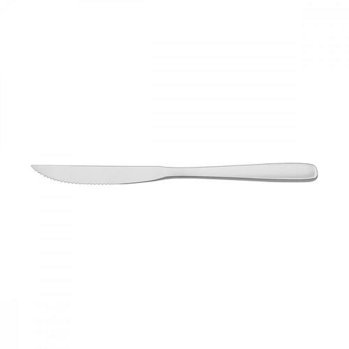 Faca totalmente temperada, que garante maior durabilidade no fio de corte e maior resistência à corrosão, e por sua característica de temperabilidade, não risca as porcelanas. Totalmente feita de aço inox, mantém suas características , preservando a beleza, a higiene e a durabilidade do material. Acabamento brilho e fosco. Própria para diário combina com qualquer ambiente. Pode ser lavada diariamente na máquina de lavar louças.