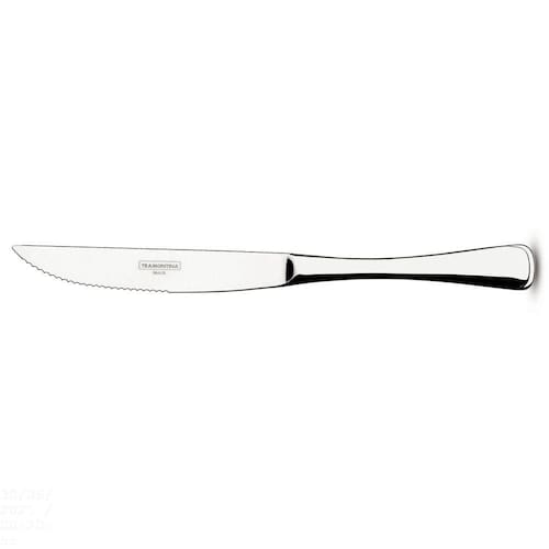O churrasco de domingo vai ficar ainda especial com a Faca para Churrasco Tramontina Mônaco em Aço Inox Forjado Acabamento Alto Brilho com Detalhes no Cabo. Perfeita para acompanhar esse momento, ela é totalmente produzida em aço inox e temperada, garantindo maior durabilidade no fio de corte e maior resistência à corrosão, além de não risca as porcelanas. Cheia de estilo, leva modernidade para sua mesa já que traz acabamento em alto brilho com detalhes no cabo. É ainda muito confortável, pois o cabo se adapta à palma da mão. Fácil de limpar, pode ser lavada diariamente na máquina de lavar louças. Orientações Totalmente feita de aço inox, altamente durável, mantém suas características originais, preservando a beleza, a higiene e a durabilidade do material. Faca totalmente temperada, que garantem maior durabilidade no fio de corte e maior resistência à corrosão, e por suas características de temperabilidade, não risca as porcelanas. O cabo da faca se adapta melhor a palma da mão. Possui equilíbrio harmônico entre o cabo e a lâmina. Acabamento em alto brilho, com detalhes no cabo. Pode ser lavada diariamente na máquina de lavar louças. Características Gerais EAN13 7891116053515 DUN14 17891116053512 NCM 8211.91.00 Peso Líquido 0,1090 kg. Peso Bruto 0,1090 kg. Metragem 0,000054 m³. Dimensões Embalagem (Compr. X Larg. X Alt.) 235x 23x 10 mm. Dimensões Produto (Compr. X Larg. X Alt.) 234x 23x 9 mm. Espessura 6,0 mm. Observações Use apenas sabão ou detergente e uma esponja macia. Outros tipos de produtos, como palha de aço, poderão riscar ou prejudicar o brilho dos talheres. Enxágue bem cada peça a fim de remover totalmente os resíduos dos produtos de limpeza, que, por serem abrasivos, podem atacar o inox. Sempre que possível, use água quente, pois renova o brilho do talher. Após a lavagem, enxugue imediatamente os talheres, caso contrário, as substâncias químicas da água (cloro) poderão causar manchas. Evite atrito entre os talheres durante o processo de lavagem e no armazenamento, para mantê-los sem riscos. Evite o contato das peças com superfícies quentes. Elas provocam a descoloração do produto. Não guarde os talheres em locais úmidos. A umidade também provoca manchas.Qualquer faca, independentemente de marca, para manter o fio de corte, é fabricada em aço com maior teor de carbono e, por isso, é menos resistente à corrosão. Assim, pedimos uma atenção especial para este artigo, pois estará mais propenso aos problemas citados. Usando máquina de lavar louças Não carregue em demasia a cesta dos talheres. Separe bem as peças, pois o contato permanente entre as mesmas, durante a secagem, poderá causar manchas. Retire os talheres logo que tenha terminado o ciclo "enxaguar", a fim de que os mesmos sejam secados manualmente.
