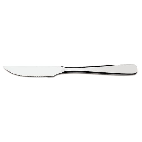 Faca para churrasco Pacific. Orientações 1. Faca totalmente temperada, que garante maior durabilidade no fio de corte e maior resistência à corrosão, e por sua característica de temperabilidade, não risca as porcelanas. 2. Totalmente feita de aço inox, mantém suas características originais, preservando a beleza, a higiene e a durabilidade do material. 3. Acabamento em brilho, com detalhes no cabo. 4. Própria para uso diário combina com qualquer ambiente. 5. Pode ser lavada diariamente na máquina de lavar louças. Observações Use apenas sabão ou detergente e uma esponja macia. Outros tipos de produtos, como palha de aço, poderão riscar ou prejudicar o brilho dos talheres. Enxágue bem cada peça a fim de remover totalmente os resíduos dos produtos de limpeza, que, por serem abrasivos, podem atacar o inox. Sempre que possível, use água quente, pois renova o brilho do talher. Após a lavagem, enxugue imediatamente os talheres, caso contrário, as substâncias químicas da água (cloro) poderão causar manchas. Evite atrito entre os talheres durante o processo de lavagem e no armazenamento, para mantê-los sem riscos. Evite o contato das peças com superfícies quentes. Elas provocam a descoloração do produto. Não guarde os talheres em locais úmidos. A umidade também provoca manchas.Qualquer faca, independentemente de marca, para manter o fio de corte, é fabricada em aço com maior teor de carbono e, por isso, é menos resistente à corrosão. Assim, pedimos uma atenção especial para este artigo, pois estará mais propenso aos problemas citados. Usando máquina de lavar louças Não carregue em demasia a cesta dos talheres. Separe bem as peças, pois o contato permanente entre as mesmas, durante a secagem, poderá causar manchas. Retire os talheres logo que tenha terminado o ciclo "enxaguar", a fim de que os mesmos sejam secados manualmente. Características Gerais EAN13 7891116082423 DUN14 17891116082420 NCM 8211.91.00 Peso Líquido 0,0630 kg. Peso Bruto 0,0630 kg. Metragem 0,000030 m³. Dimensões Embalagem (Compr. X Larg. X Alt.) 231x 22x 6 mm. Dimensões Produto (Compr. X Larg. X Alt.) 231x 22x 6 mm. Espessura 4,0 mm.
