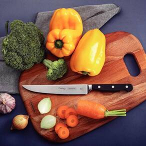 Recomenda-se o uso de tábuas de polipropileno ou madeira da Tramontina para maior durabilidade do fio da faca;
