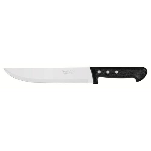 Possua utensílios de qualidade e versatilidade na sua cozinha. Com a Faca para Cozinha Tramontina Plenus com Lâmina em Aço Inox e Cabo de Polipropileno Preto 8 Polegadas da Linha Plenus, você vai ter uma peça com visual moderno na sua cozinha. Ideal para carnes, frutas e vegetais, podendo ser usada em todas as preparações de receitas. A lâmina de 8 polegadas é em aço inox e o cabo de polipropileno na cor preta oferecendo segurança e conforto no manuseio. Possui rebites de alumínio. Fácil de limpar podem ser usados na máquina de lavar louças. Orientações A lâmina de aço inox têm maior durabilidade do fio devido ao tratamento térmico. O cabo de polipropileno possuem maior resistência e durabilidade. Rebites de alumínio.Pode ir à máquina de lavar louças facilitando seu dia a dia. Características Gerais EAN13 7891112003071 DUN14 17891112003078 NCM 8211.92.10 Peso Líquido 0,0935 kg. Peso Bruto 0,1150 kg. Metragem 0,000382 m³. Dimensões Embalagem (Compr. X Larg. X Alt.) 15x 67x 380 mm. Dimensões Produto (Compr. X Larg. X Alt.) 325x 39x 14 mm. Espessura 1,2 mm. Cor 1 000000 Hexa Observações Antes da primeira utilização, lave bem as peças e seque-as. Tenha cuidado ao manusear produtos cortantes e perfurantes e mantenha-os fora do alcance de crianças. Para maior durabilidade dos produtos, recomenda-se secar bem antes de guardar, mesmo após lavagem em máquina.Para descarte dos produtos e embalagens siga as orientações de reciclagem vigentes.