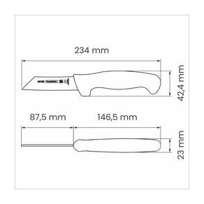 Qualidade e durabilidade para profissionais que trabalham muito. Com tecnologia de ponta, as facas profissionais estão sempre preparadas para entrar em ação e fazer bonito com qualquer ingrediente. Eficiência é o que não falta. A altíssima qualidade das lâminas, resultado do tratamento térmico composto por têmpera (aquecimento da lâmina), subzero (resfriamento de 50 a 196 graus negativos) e revenimento (aumento da elasticidade do aço) garante vida longa e eficiente. A anatomia e ergonomia do cabo de polipropileno texturizado, injetado diretamente sobre a espiga da lâmina, oferecem segurança e conforto durante o manuseio. A proteção antimicrobiana inibe e reduz o crescimento de bactérias e fungos. Essa tecnologia é incorporada durante o processo de fabrição do cabo e dura por toda vida útil do produto, mas não não elimina a necessidade de lavá-los.